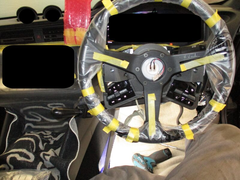 お客様にご来店頂いて現車を前に状況を説明してステアリングスイッチをステアリングコラムに移設出来ないか等、方向性を検討しました。