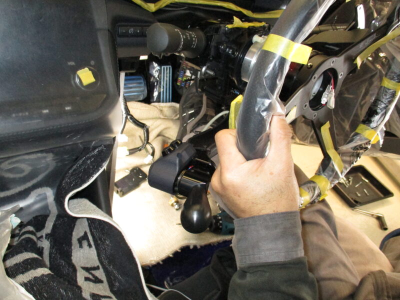 今回の運転補助装置取付に際してお客様のご希望でフルバケットシート二脚とステアリングの交換作業がありました。